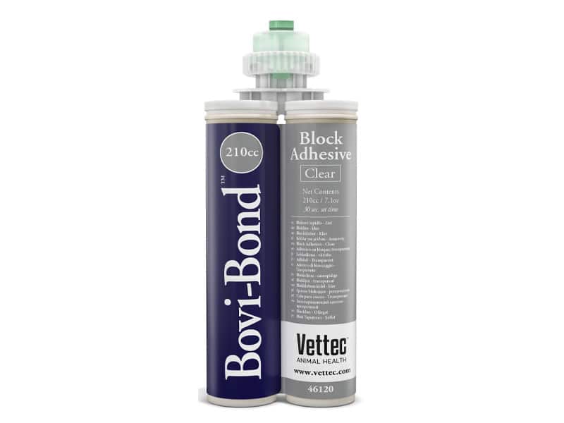 Fast setting urethane adhesive designed to bond wood or rubber blocks to bovine hooves.