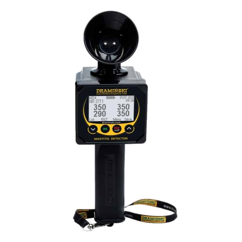 The Draminski Mastitis Detector MD4Q2 gives farmers the ability to spot udder health issues long before visible symptoms appear, helping protect cow welfare and milk quality while reducing veterinary costs. By measuring the electrical resistance of milk from each quarter, the device identifies early changes linked to rising salt levels—one of the first indicators of sub-clinical mastitis.