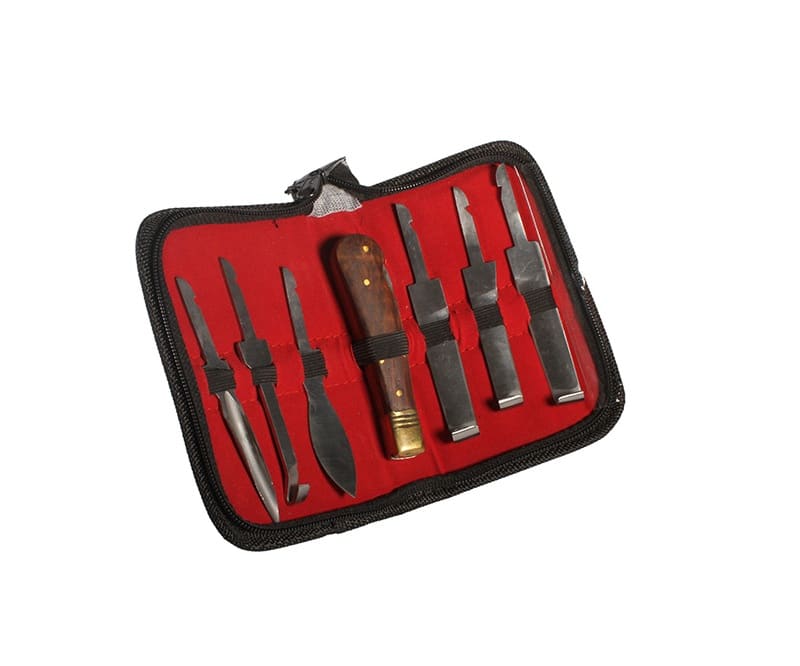 Hoof Knife Pocket Set is a portable kit designed for hoof care professionals—perfect for trimming cattle, sheep, and horses out in the field.