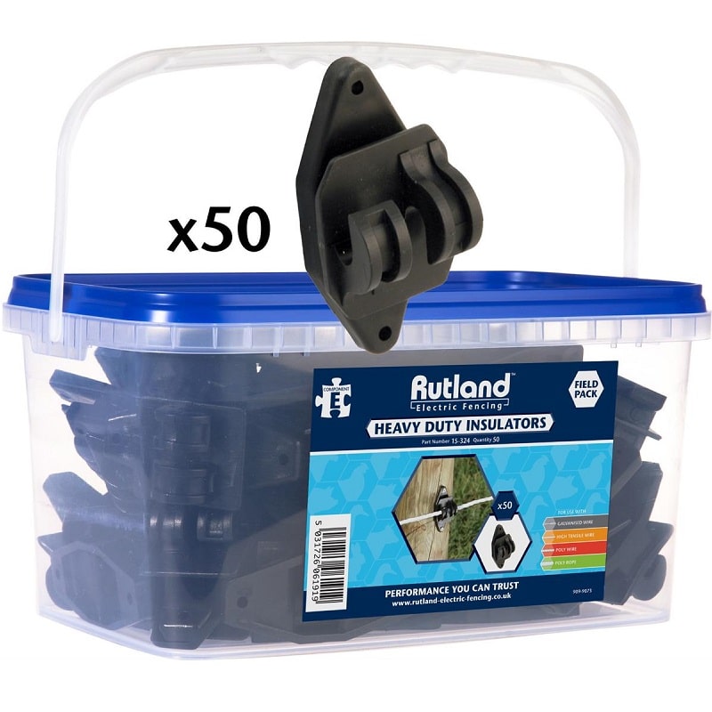The Rutland heavy duty insulators pk50 are built for farms that need reliable, long-lasting performance from their electric fencing. Supplied in a sturdy, convenient bucket for easy handling and storage, these insulators feature a reinforced design that stands up to tension, weather and daily wear.